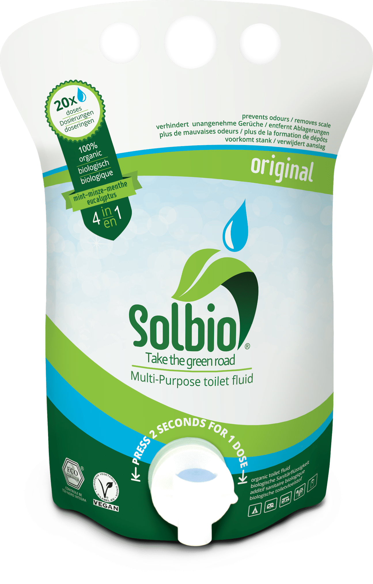 Solbio Original is a revolutionary toilet fluid for portable toilets, designed with a strong focus on environmental sustainability. Composed of 100% natural ingredients, Solbio Original is free from harmful chemicals, making it safe for both people and the planet. Its eco-friendly formula is certified by CUC, EcoGarantie, and Vegan, highlighting our commitment to environmental and ethical standards. To further reduce our ecological footprint, Solbio Original is packaged in innovative, sustainable solutions such as a convenient pouch and a space-saving Bag-in-Box (BIB). These packaging methods minimize plastic waste while maintaining practicality and user convenience. Solbio Original ensures optimal performance, providing a hygienic and odor-free solution for portable toilets without compromising on sustainability. This pioneering product embodies our mission to make portable sanitation greener and cleaner.