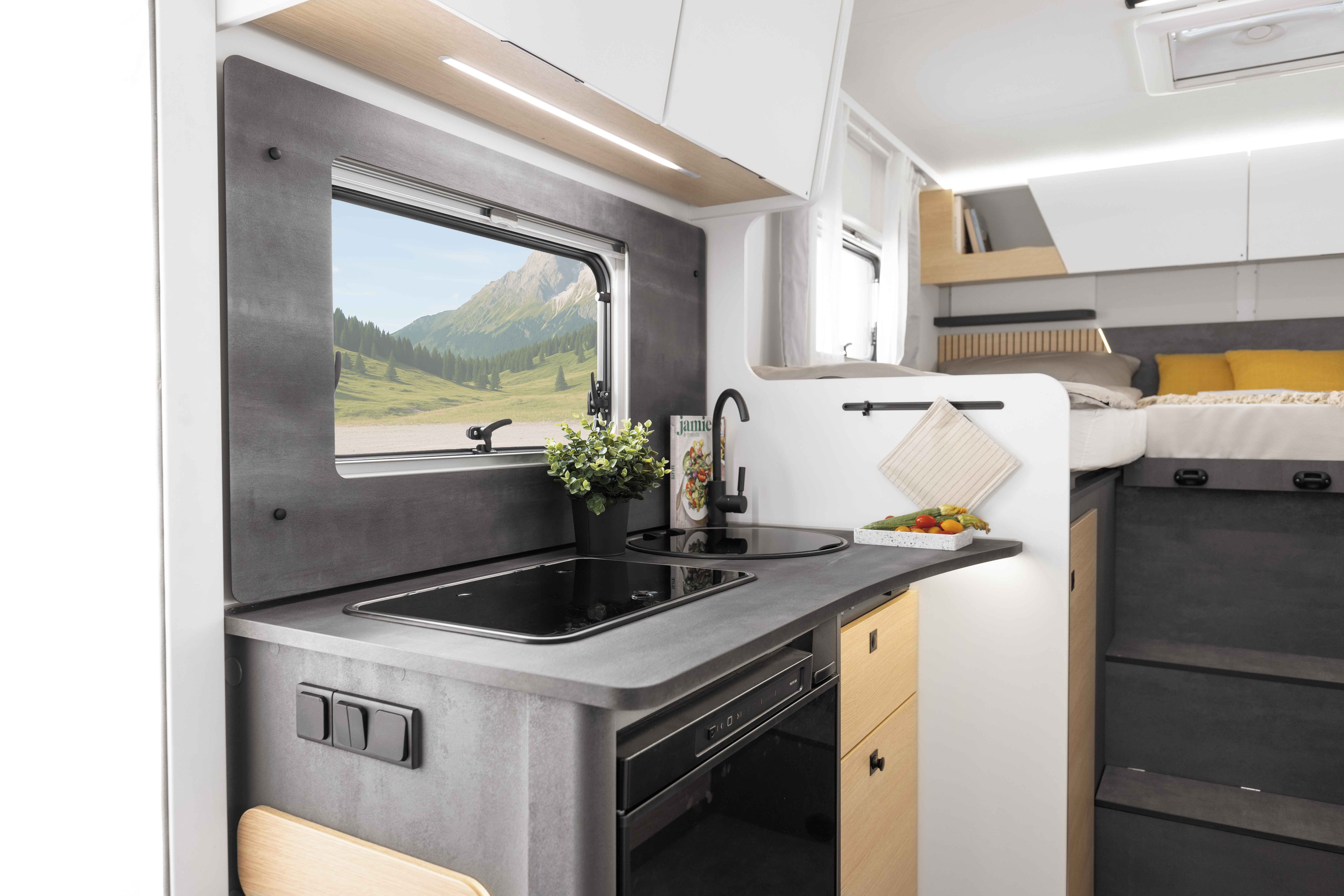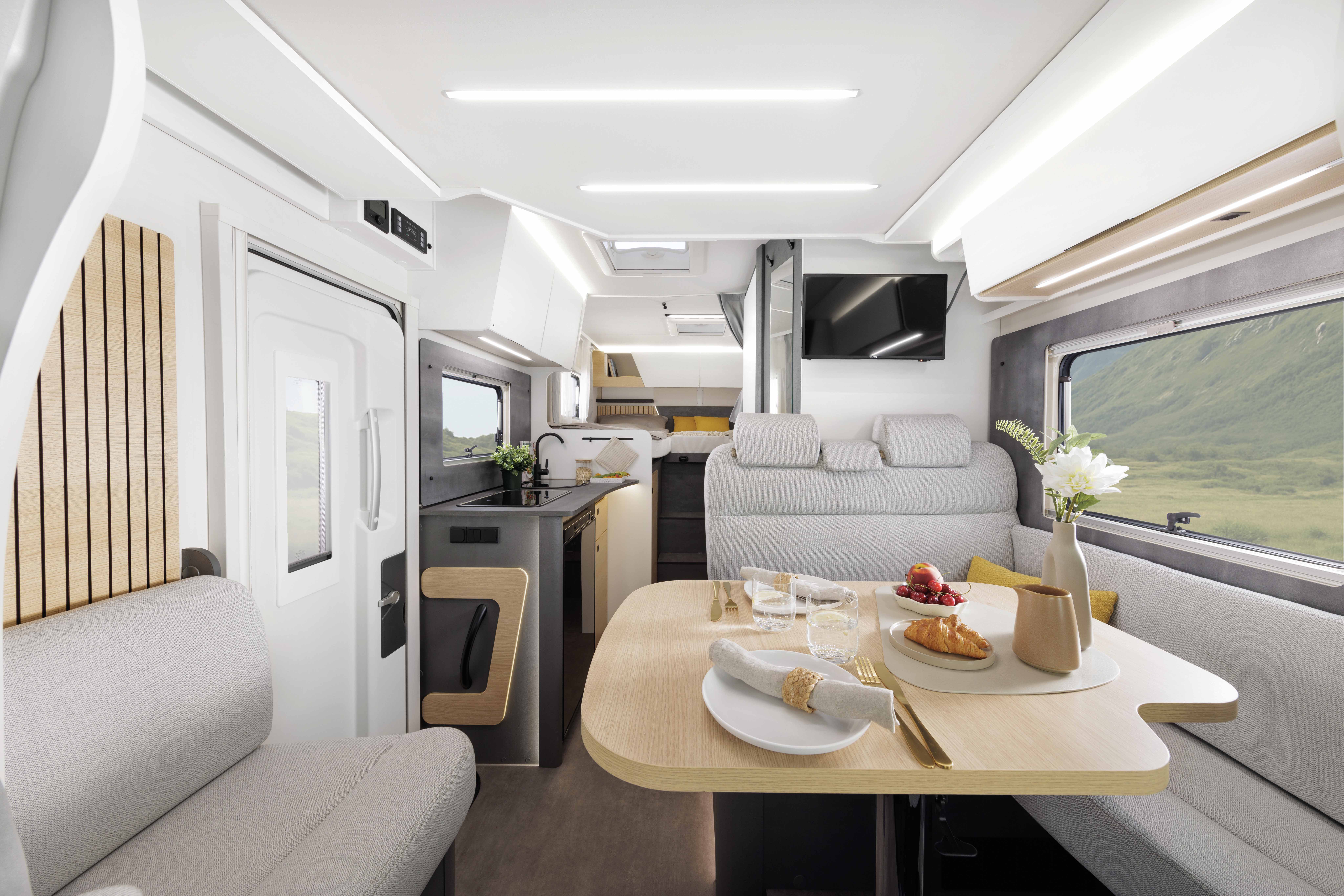 Der T 690 vereint auf unter sieben Metern Länge modernes Raumgefühl mit durchdachter Funktionalität, avantgardistischem Design und kompromissloser Qualität. Der klar strukturierte Grundriss mit separatem Schlafbereich, zentraler Dinette und kompaktem Bad nutzt jeden Zentimeter intelligent – unterstützt durch clever integrierte Stauraumlösungen. Dank opt. Dinetten-Umbau und Hubbett lässt sich der Wohnraum flexibel anpassen.