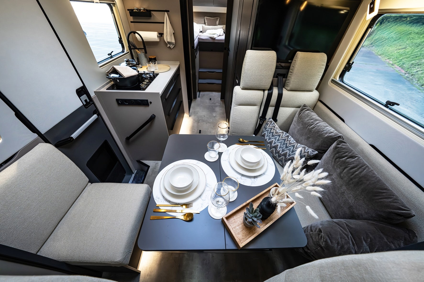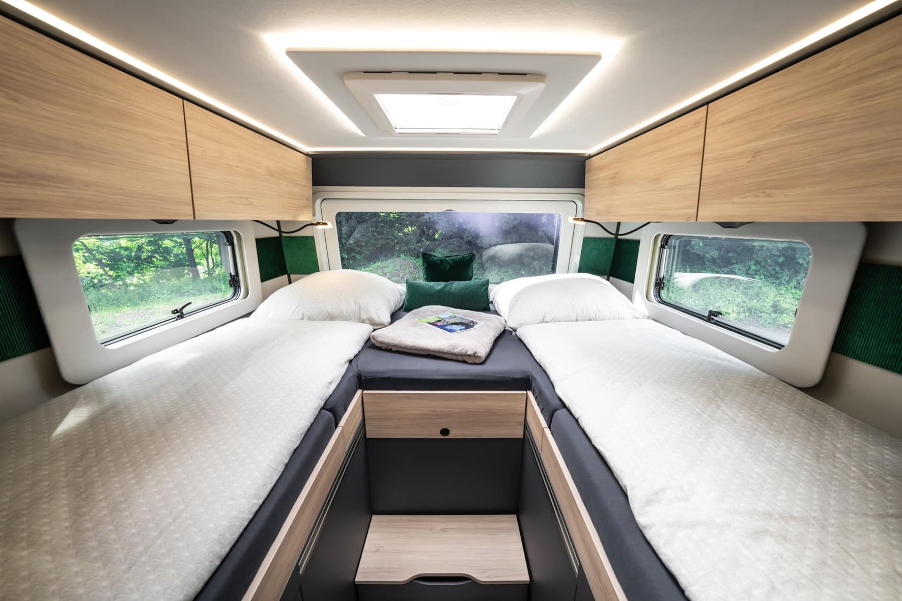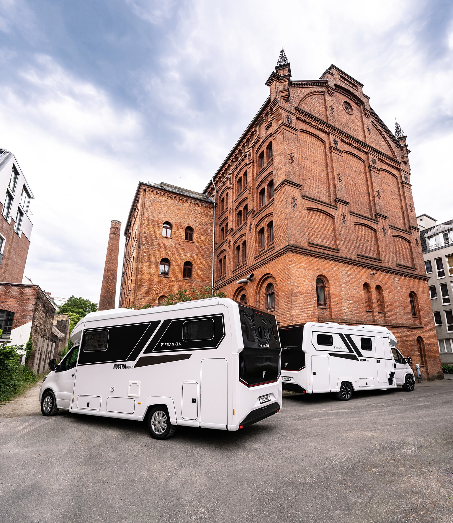 Mehr Style, mehr Raum, mehr Komfort: FRANKIA NOCTRA definiert Luxus neu. Mit dem teilintegrierten NOCTRA Cruiser 7.6 L präsentiert FRANKIA das erste Modell einer neuen Generation – einen 4,5-Tonner, der auf dem Mercedes-Benz Sprinter oder dem Fiat Ducato basiert. Zwei Jahre Entwicklungszeit flossen in ein Fahrzeug, das in Design, Komfort und Qualität „Made in Germany“ Maßstäbe setzt. Dabei wurde vom Großen bis ins kleinste Detail alles neu gedacht: Aufbau, Raum, Licht und Design schaffen ein Reiseerlebnis auf höchstem Niveau. Highlights außen sind das markante Statement-Heck mit durchgehendem BridgeLight, ein exklusives Panoramafenster und zwei Varianten eines edlen Außendesigns. Innen startet NOCTRA eine echte Design- und Komfortrevolution – mit neu konzipiertem Wellnessbad, Sitzgruppe, Küche, Schlafraum und Doppelboden sowie individuell kombinierbaren Luxus-Styles. Der NOCTRA Cruiser 7.6 L verkörpert die Zukunft des Reisens bei FRANKIA – innovativ, stilvoll, luxuriös.