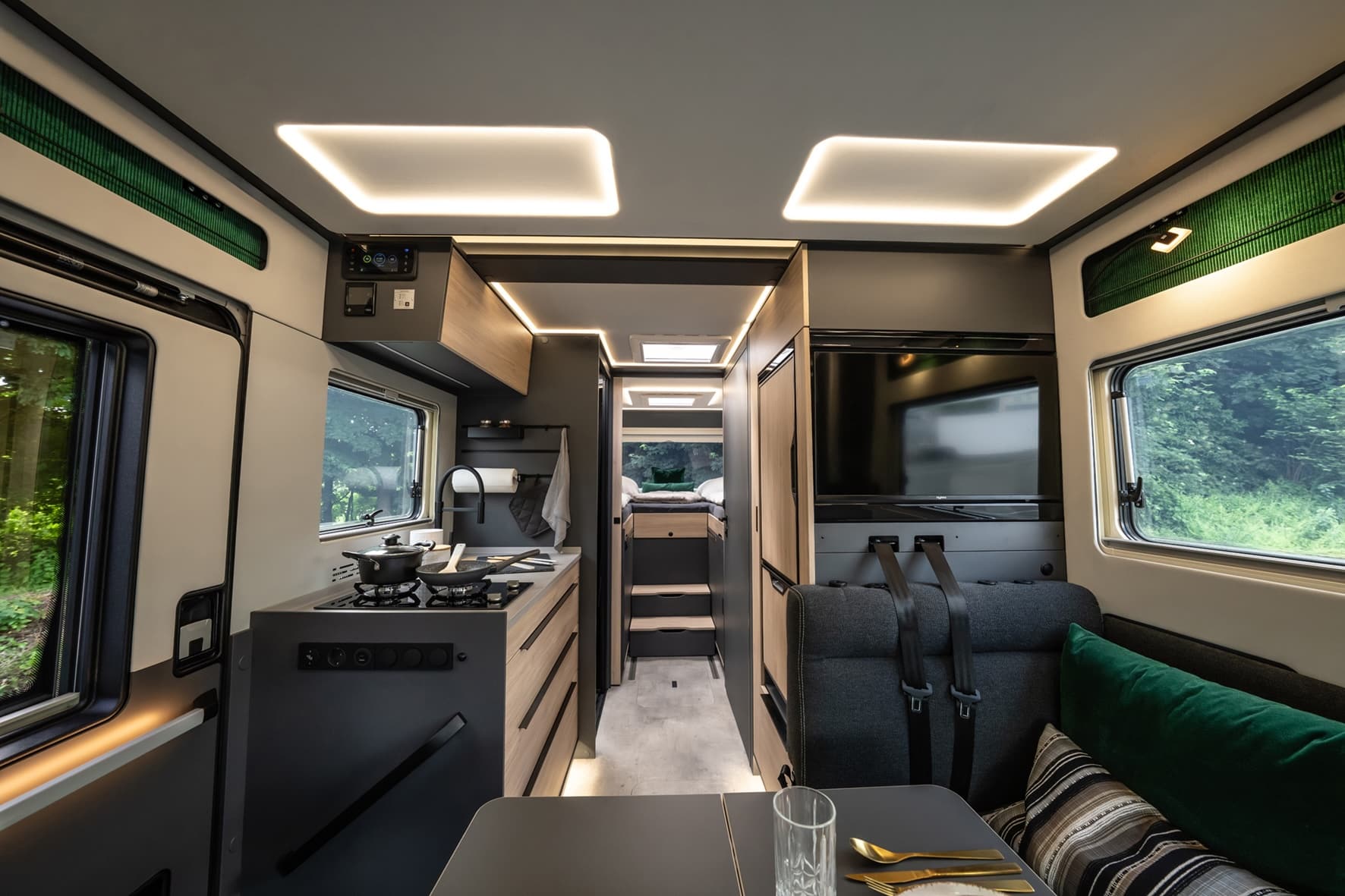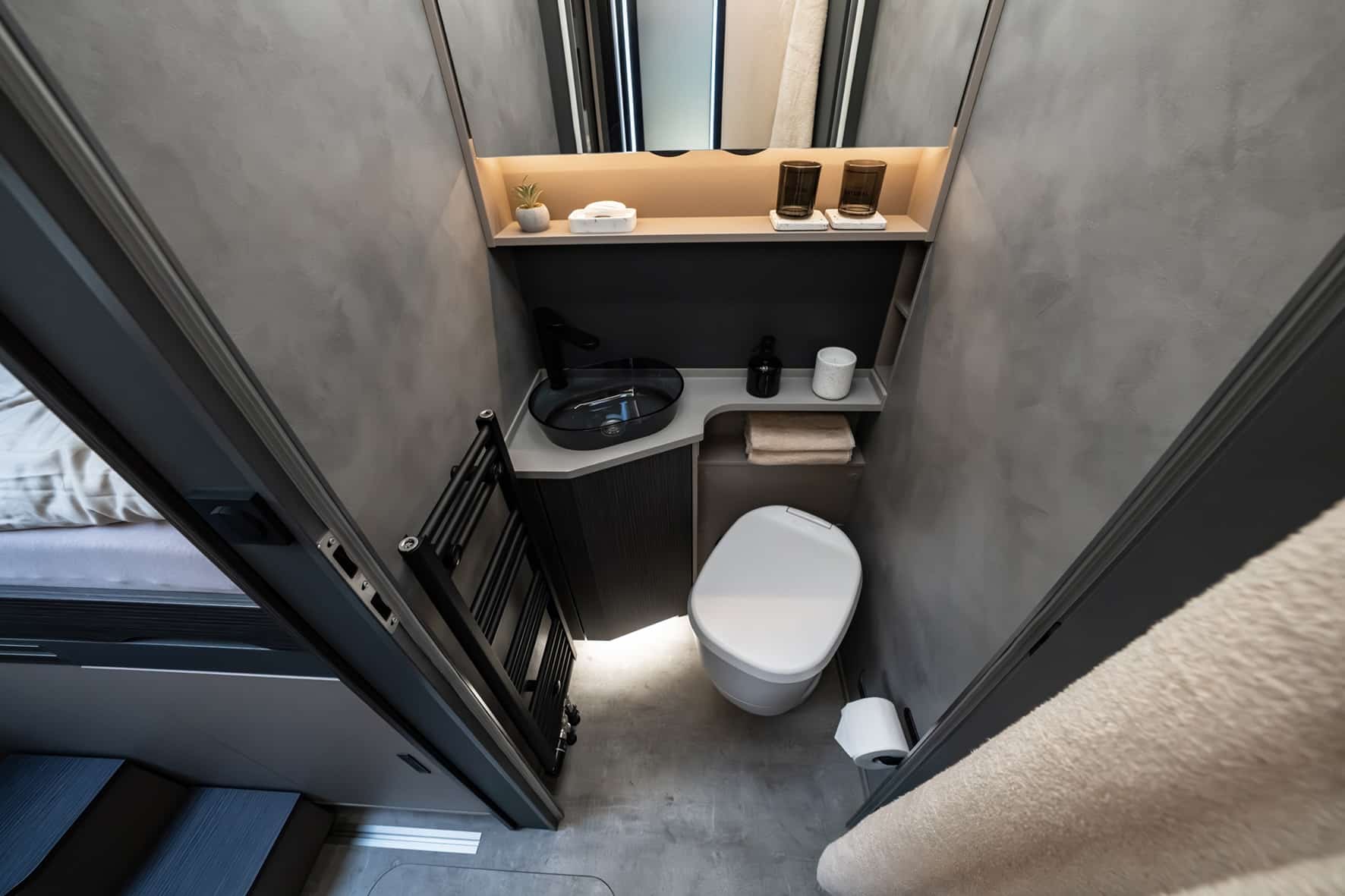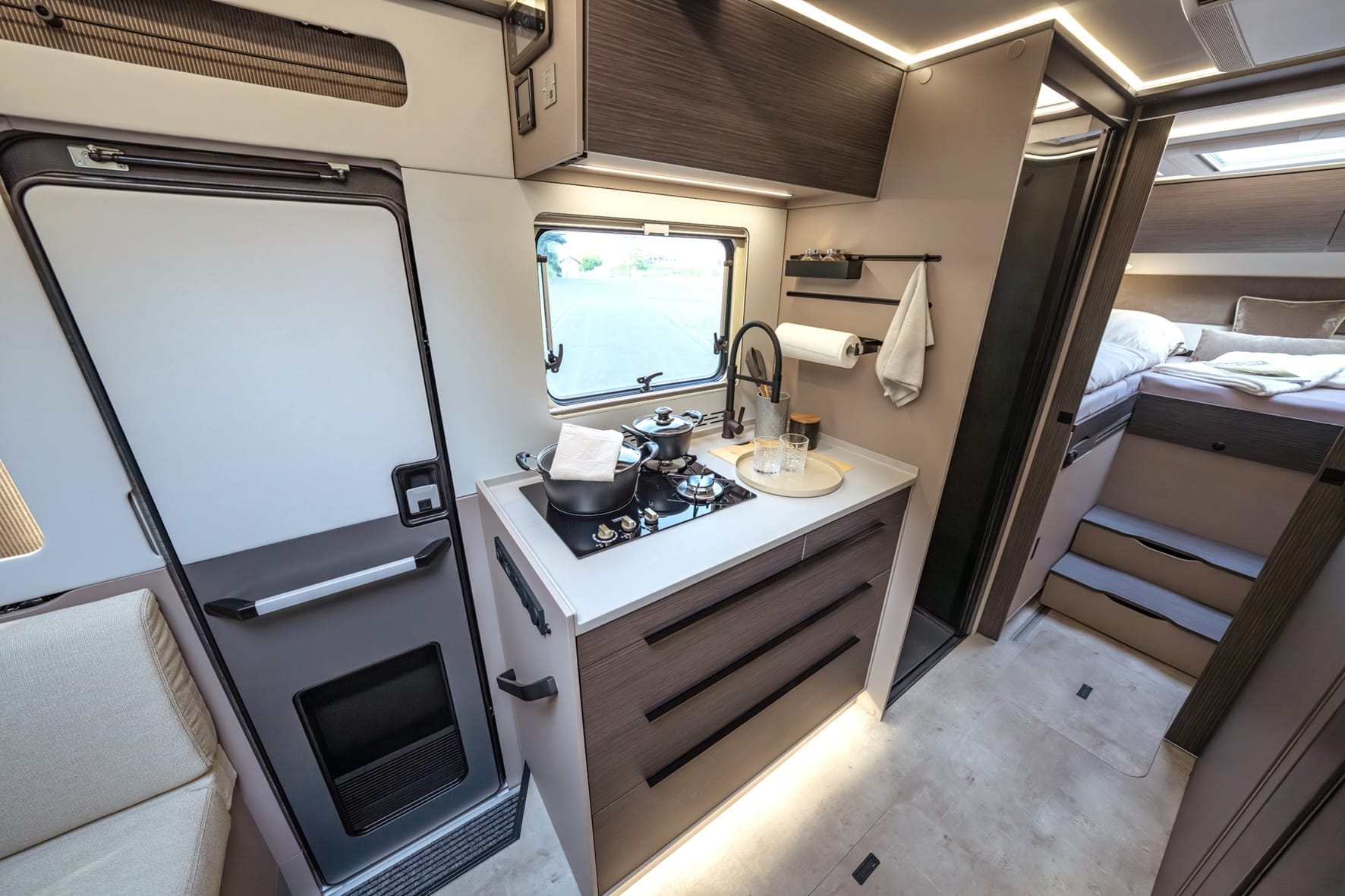 Mehr Style, mehr Raum, mehr Komfort: FRANKIA NOCTRA definiert Luxus neu. Mit dem teilintegrierten NOCTRA Cruiser 7.6 L präsentiert FRANKIA das erste Modell einer neuen Generation – einen 4,5-Tonner, der auf dem Mercedes-Benz Sprinter oder dem Fiat Ducato basiert. Zwei Jahre Entwicklungszeit flossen in ein Fahrzeug, das in Design, Komfort und Qualität „Made in Germany“ Maßstäbe setzt. Dabei wurde vom Großen bis ins kleinste Detail alles neu gedacht: Aufbau, Raum, Licht und Design schaffen ein Reiseerlebnis auf höchstem Niveau. Highlights außen sind das markante Statement-Heck mit durchgehendem BridgeLight, ein exklusives Panoramafenster und zwei Varianten eines edlen Außendesigns. Innen startet NOCTRA eine echte Design- und Komfortrevolution – mit neu konzipiertem Wellnessbad, Sitzgruppe, Küche, Schlafraum und Doppelboden sowie individuell kombinierbaren Luxus-Styles. Der NOCTRA Cruiser 7.6 L verkörpert die Zukunft des Reisens bei FRANKIA – innovativ, stilvoll, luxuriös.