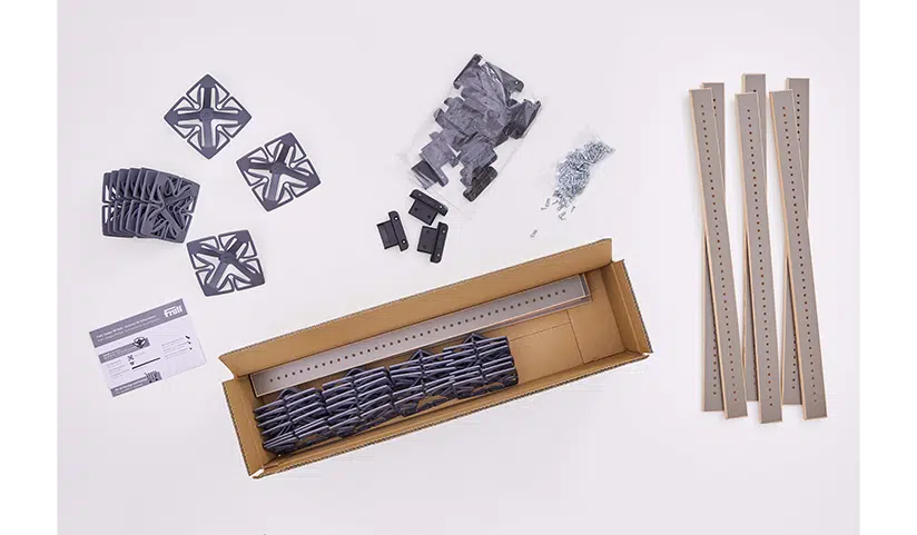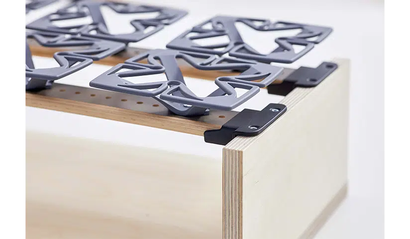 Im DIY (Do ist yourself) Set sind elf gebogene Federleisten beinhaltet. Das Lattenrost, bestehend aus einzelnen Federleisten, sägst du ganz einfach auf die von dir benötigte Länge zu. Anschließend befestigst du die zugesägten Federleisten in den Leistenaufnahmen. Diese verbindest du dann mit den beinhalteten Schrauben mit deiner Bettkonstruktion. Die Löcher, in die du die Froli Federn steckst, sind auf den Federleisten vorgebohrt. Hier kannst du variieren und dir dein bestes Schlafgefühl schaffen.